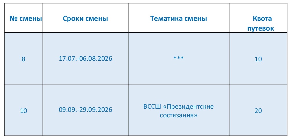 Подача заявок на конкретную смену прекращается за 40 календарных дней до начала смены. Крайний срок окончания рассмотрения заявок составляет 30 дней до начала смены.