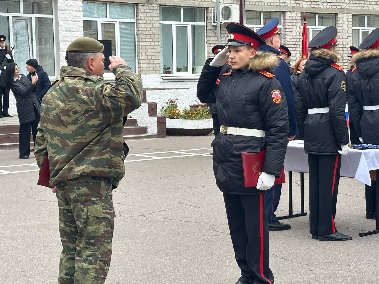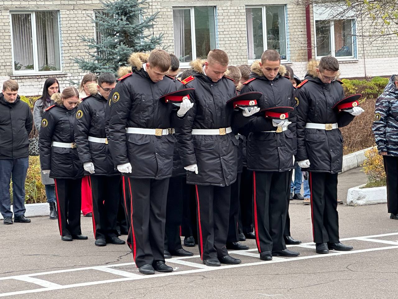 В ходе мероприятия кадеты возложили цветы к мемориальным доскам Героя России Валерия Ивановича Шкурного, Героя СВО - капитана Кирилла Валентиновича Даничкина и почтили память воинов, шагнувших в вечность, минутой молчания.