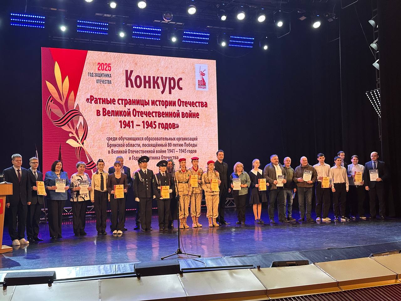 Лучшим из лучших - призерам и победителям конкурса-многоборья «Во славу Отечества» и областного состязания «Ратные страницы истории Отечества в Великой Отечественной войне 1941 - 1945 годов», в ходе торжества были вручены грамоты департамента образования и науки Брянской области. Их наставники также отмечены благодарностями департамента.