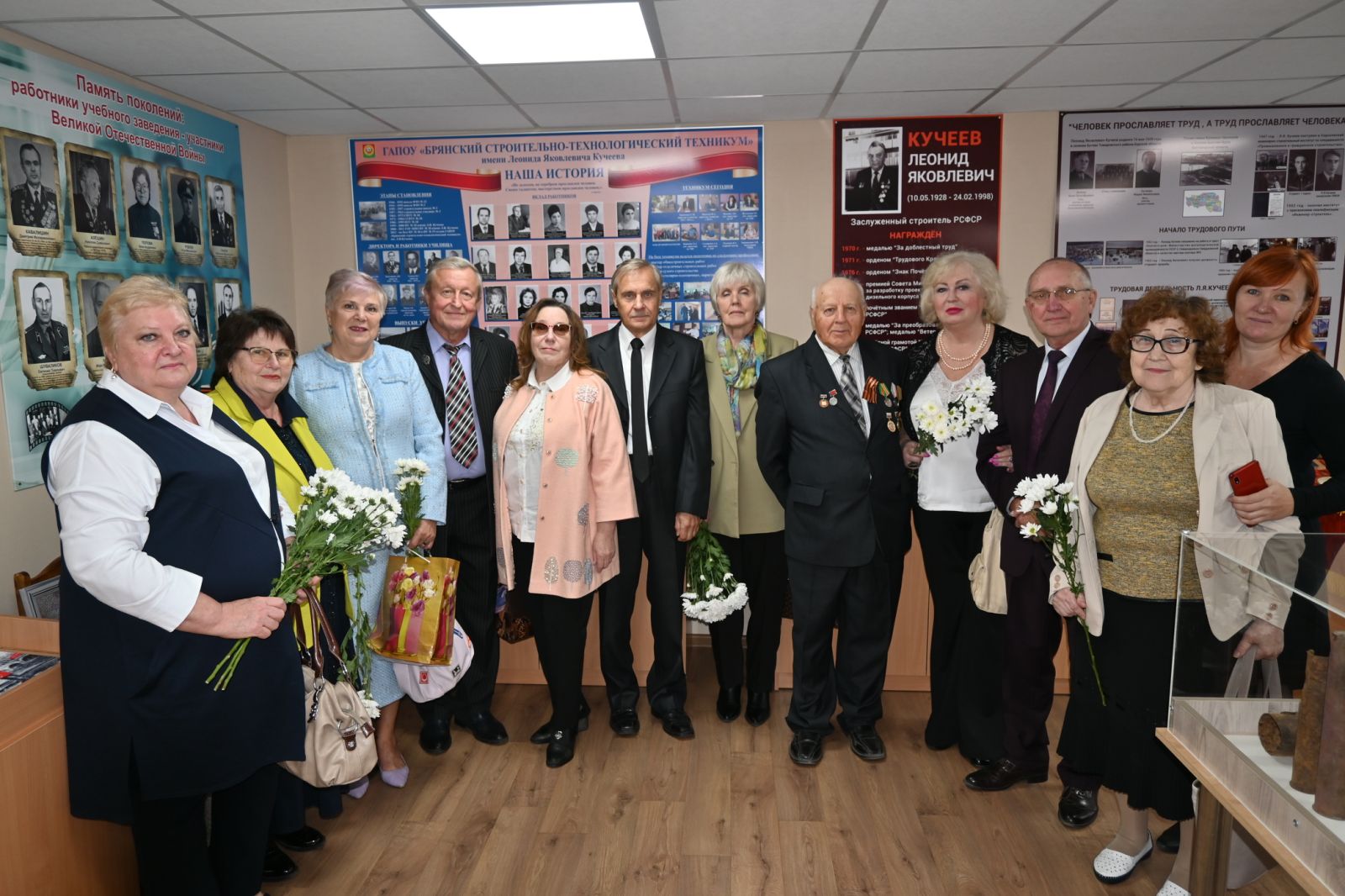2 октября 2023 г. на базе ГАПОУ «Брянский строительно-технологический техникум имени Л.Я. Кучеева» состоялось торжественное мероприятие, посвященное Дню среднего профессионального образования. Среди почетных гостей мероприятия были врио по руководству департаментом образования и науки Брянской области Андреева Алевтина Александровна, председатель Брянской областной организации Общероссийского Профсоюза образования Голубева Анна Ивановна, ректор Брянского института повышения квалификации работников образования Матюхина Полина Валерьевна и председатель Общественного Совета при департаменте образования и науки Брянской области Геращенков Владимир Семенович.