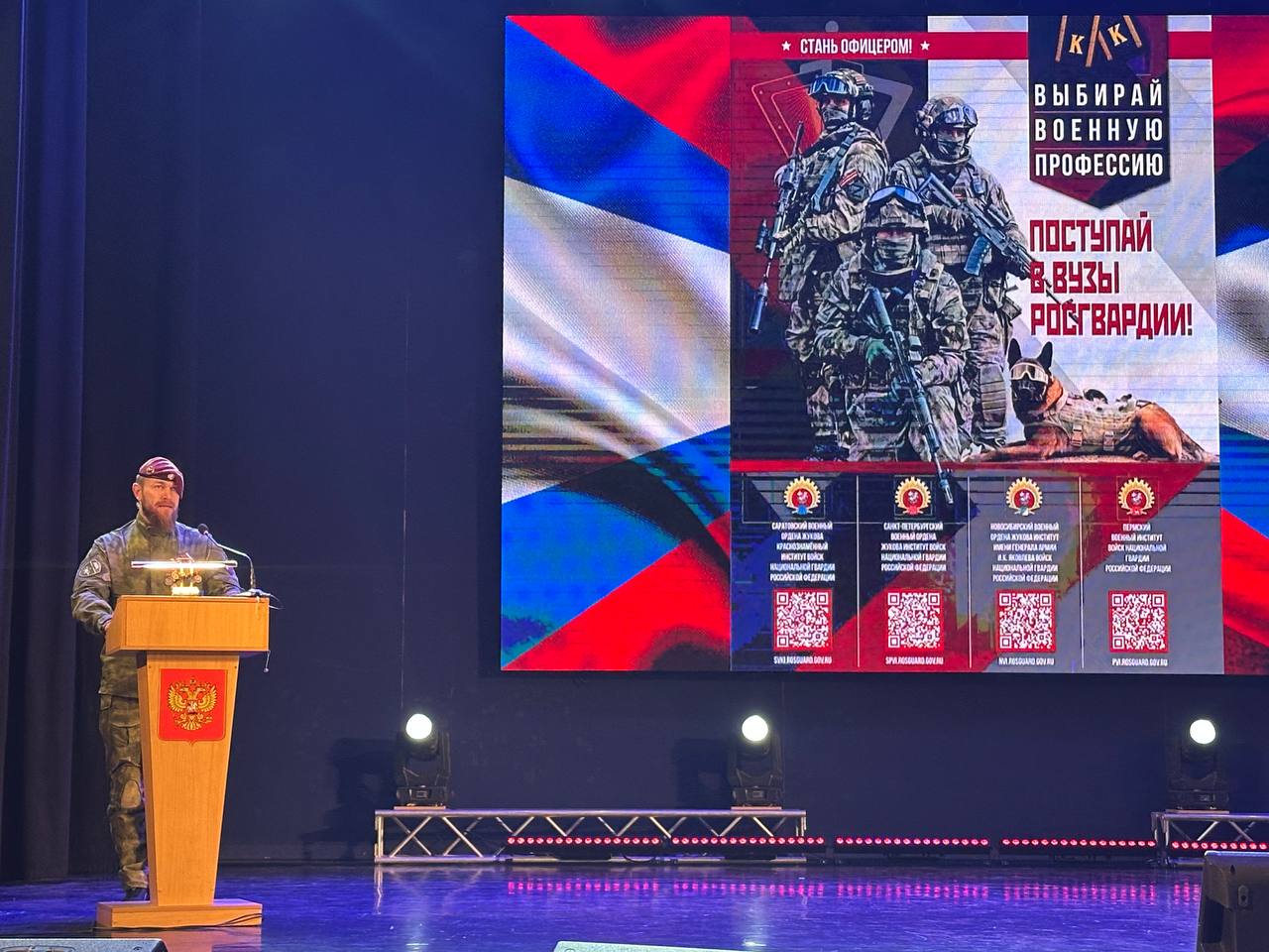 В ходе мероприятия представители образовательных учреждений из Смоленска, Ярославля, Воронежа, Санкт-Петербурга, Череповца познакомили ребят с направлениями, которые можно освоить в этих учебных заведениях, рассказали о новейшем материально-техническом оснащении, которое используется в обучении, а благодаря видеосюжетам ребята своими глазами увидели жизнь и быт обучающихся – будущих защитников Отечества. Впечатляющий видеоролик рассказал участникам акции о подготовке войск для национальной гвардии. Для собравшихся прозвучали патриотические музыкальные композиции «Служить России», «Жди меня домой», «Жить».