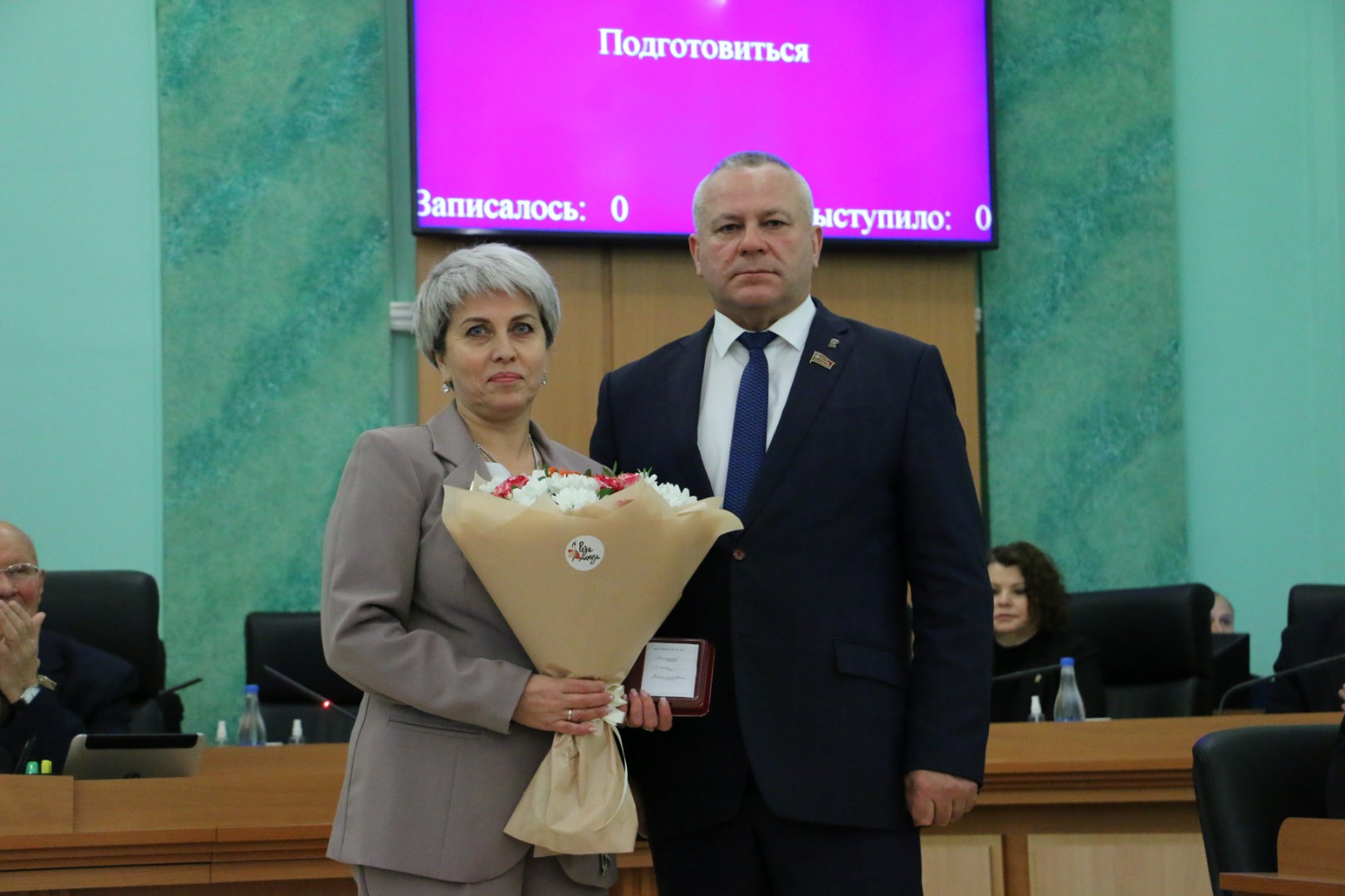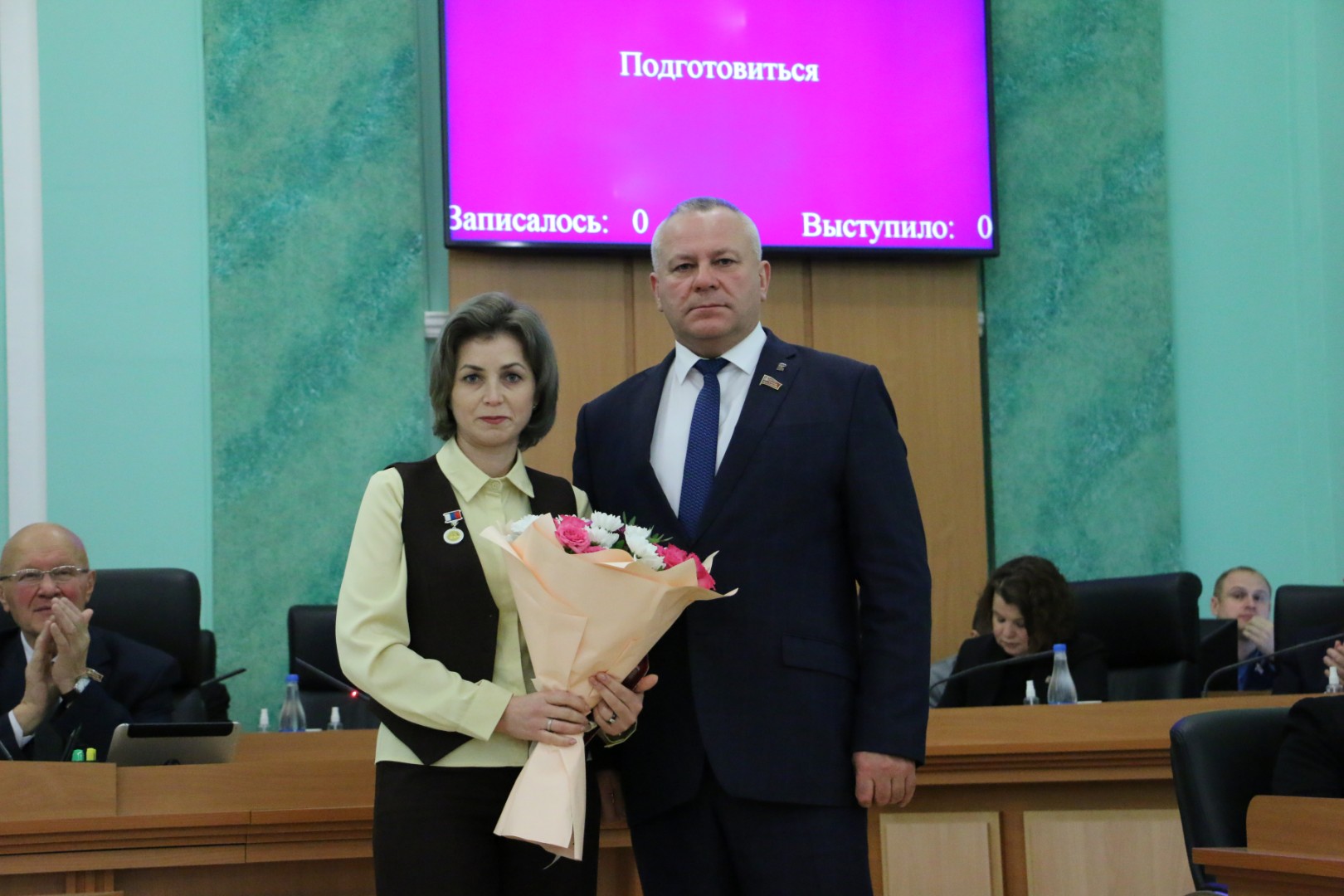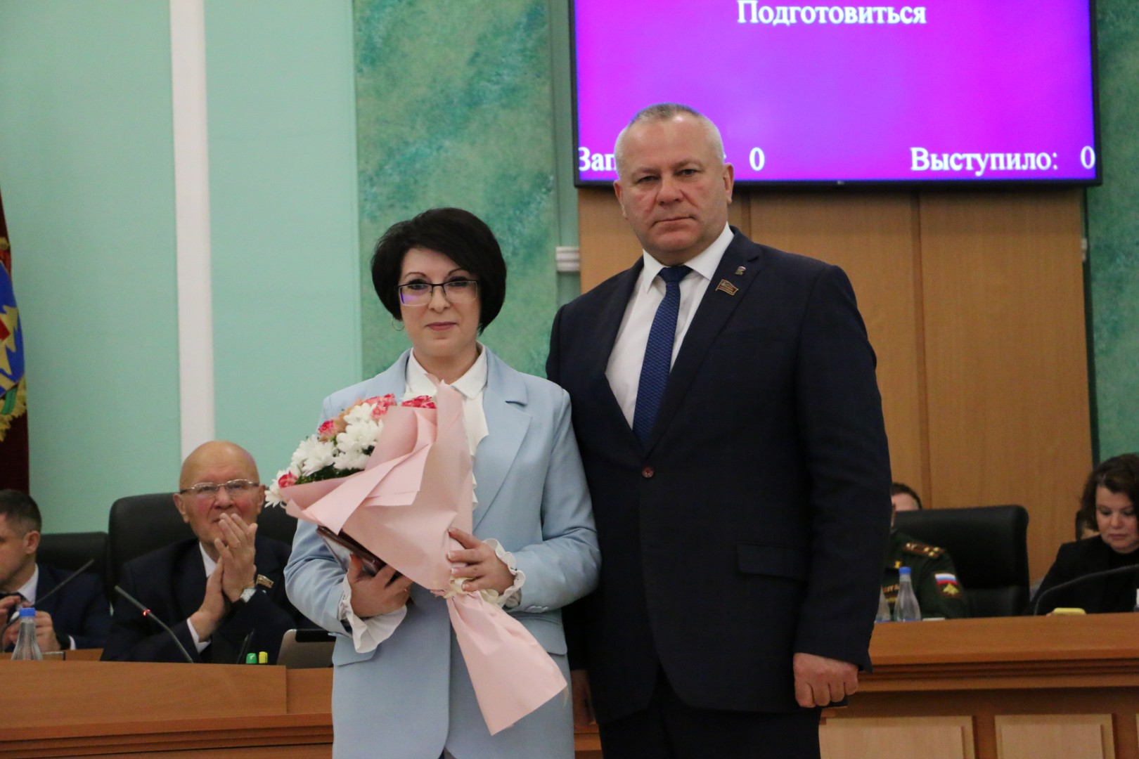 На заседании Брянской областной Думы 23 декабря 2025 года состоялось торжественное вручение удостоверений и нагрудных знаков в связи с присвоением почётного звания «Заслуженный работник образования Брянской области» за заслуги в педагогической и воспитательной деятельности, обеспечивающей получение обучающимися глубоких знаний, развитие и совершенствование их творческого потенциала: