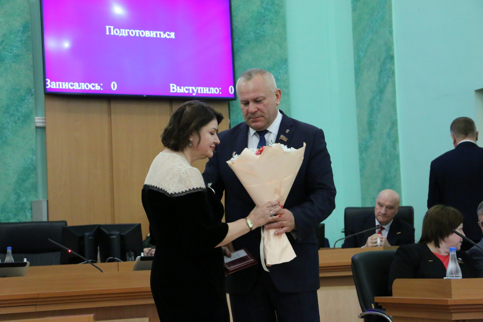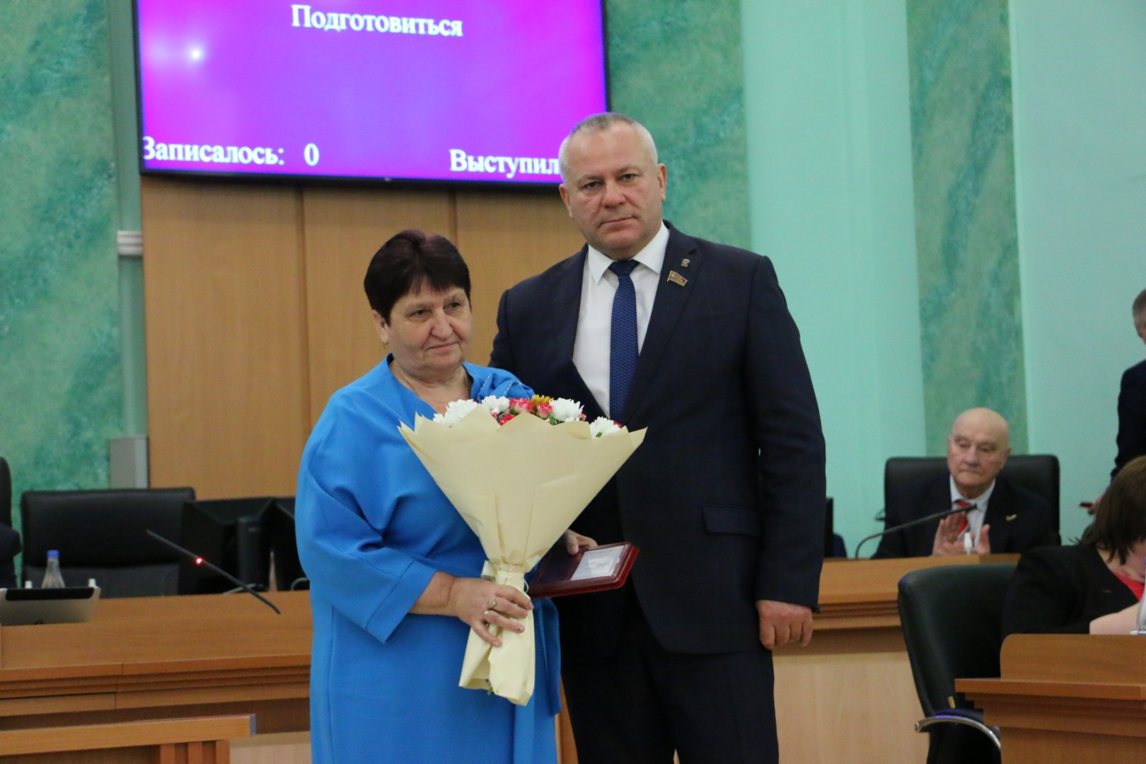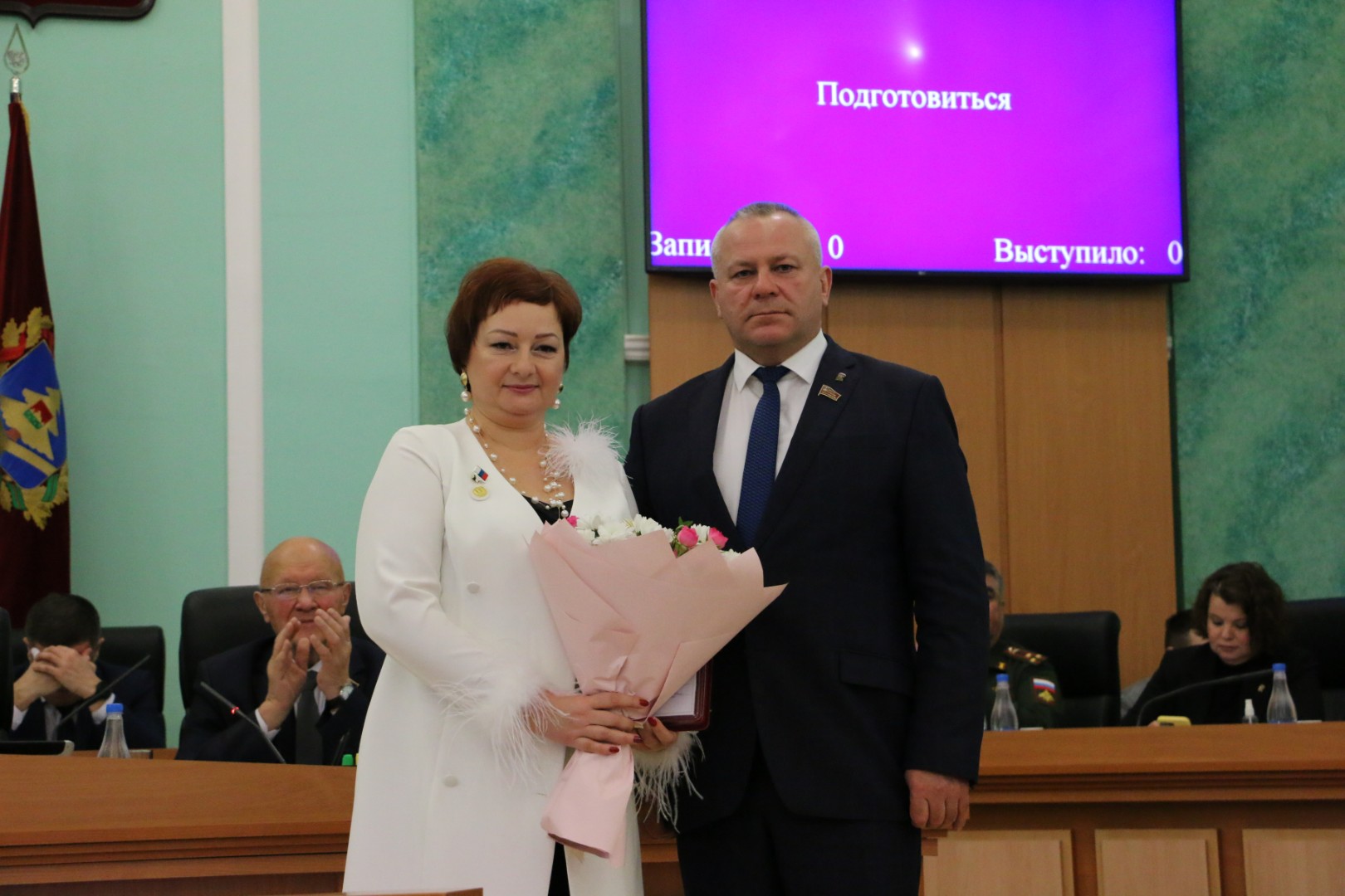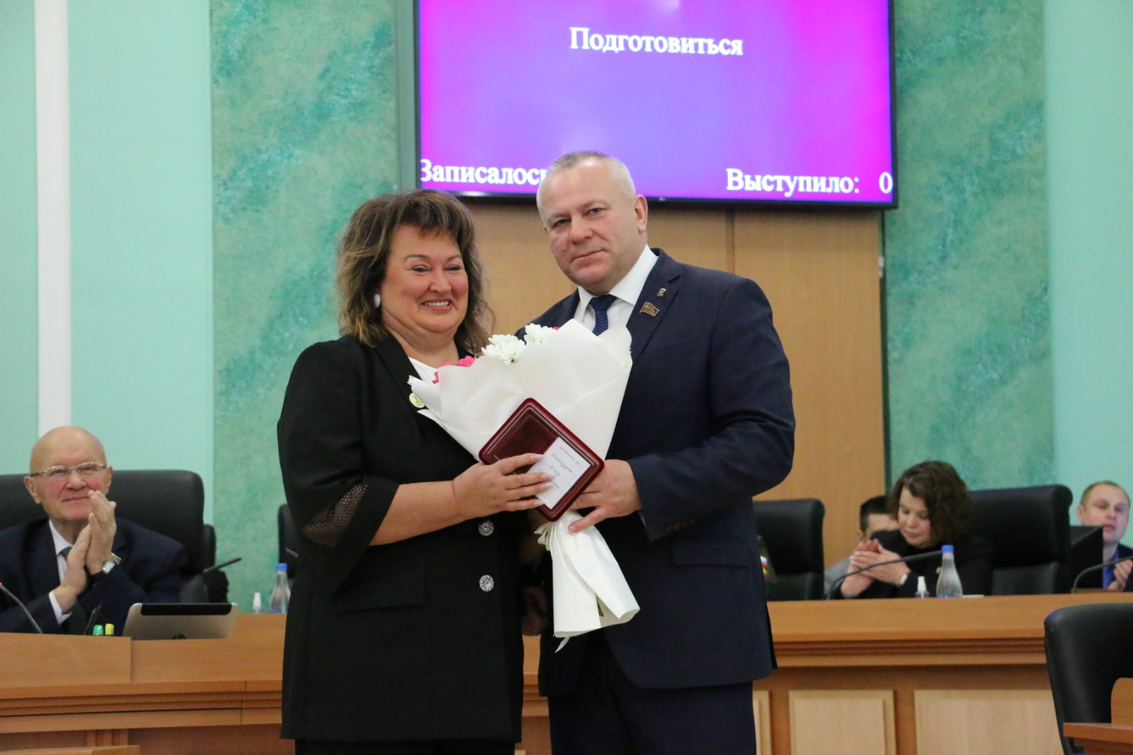 На заседании Брянской областной Думы 23 декабря 2025 года состоялось торжественное вручение удостоверений и нагрудных знаков в связи с присвоением почётного звания «Заслуженный работник образования Брянской области» за заслуги в педагогической и воспитательной деятельности, обеспечивающей получение обучающимися глубоких знаний, развитие и совершенствование их творческого потенциала:
