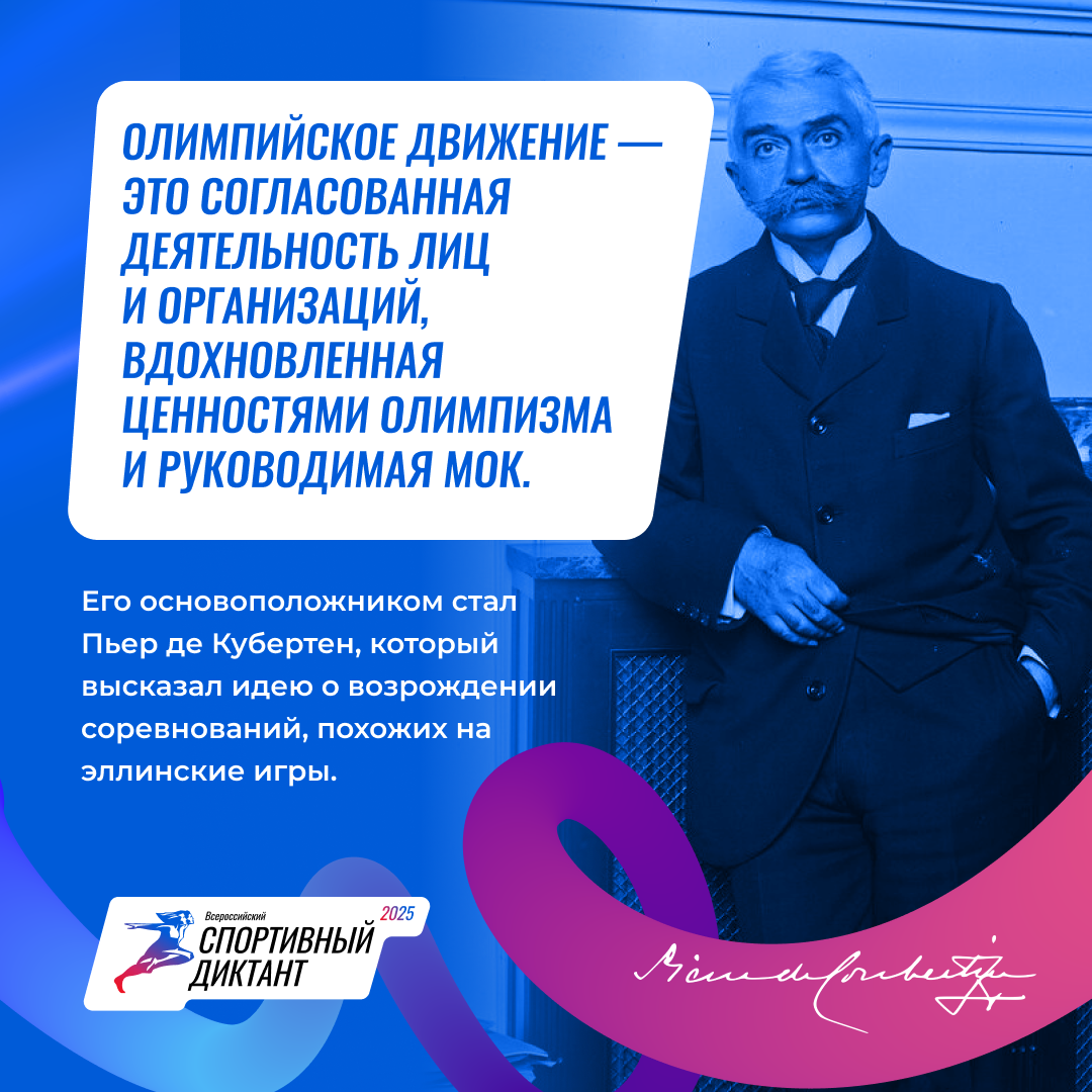 Спортивный диктант – это всероссийская просветительская акция, посвящённая повышению спортивной грамотности и развитию интереса к физической культуре и здоровому образу жизни. Задания диктанта оформлены в виде теста.
