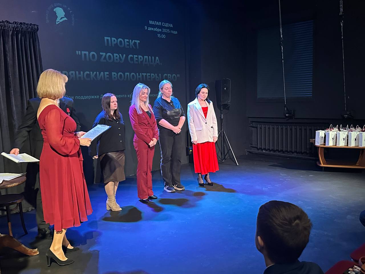 В День Героев Отечества, 9 декабря, в Брянском театре драмы имени А.К. Толстого состоялась презентация проекта «По Zову сердца. Брянские волонтеры СВО». Это живой рассказ о добровольцах - жительницах Брянщины. Тех, для кого помощь нашим бойцам это не просто гражданский долг, а ежедневная жизненная потребность, кто каждый день поддерживает, вдохновляет, оберегает, спасает, наших Героев - участников СВО.