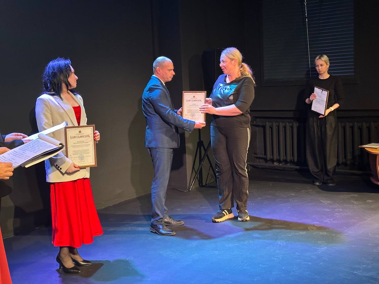 Девушкам-волонтерам вручены благодарственные письма департамента культуры Брянской области, а также цветы и подарки от коллектива театра драмы.