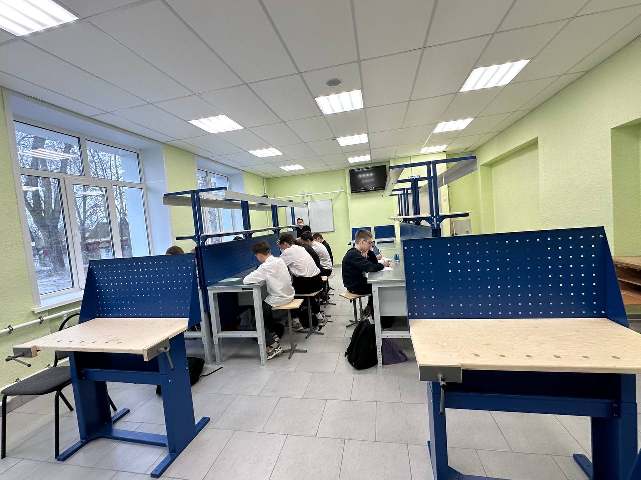 В школе N42 капитальный ремонт еще не завершен. Комиссия оценила его ход и качество проведенных работ вместе с подрядчиком. На данный момент во всем здании выполнены демонтажные работы. Ведется отделка на 1 и 2 этажах здания, выполняется облицовка плиткой лестничных маршей и санузлов, производится установка светильников и монтаж навесных потолков. На 2 этаже здания рабочие приступили к покраске стен, ведется установка радиаторов. Рабочие выполняют монтаж потолка в спортзале, его площадь увеличилась благодаря решению перенести раздевалки и душевые на другой этаж. Запущено отопление здания. Закуплено новое оборудование.