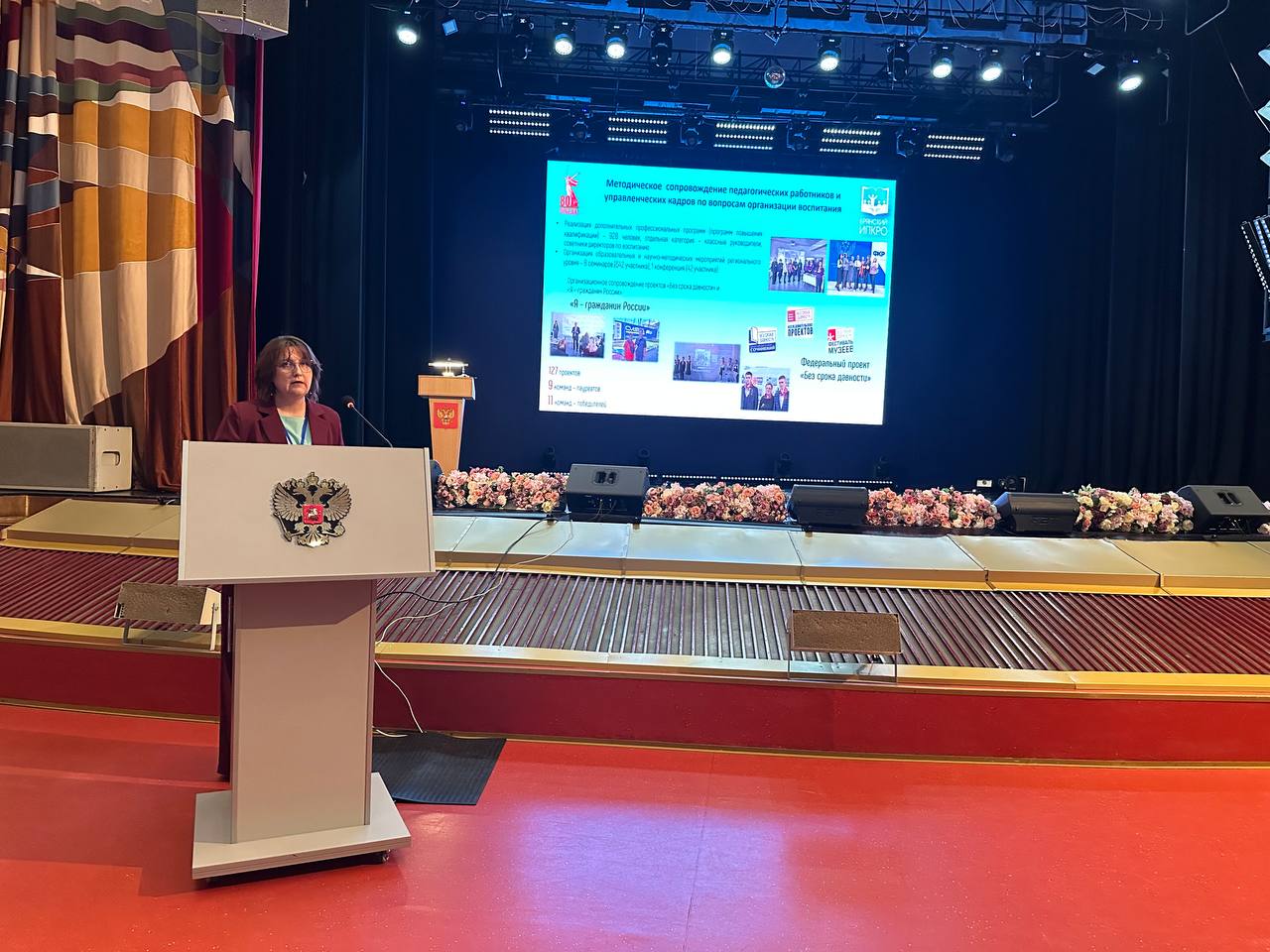 С приветствием к присутствующим обратилась директор департамента образования и науки Брянской области Алевтина Андреева, отметив, что педагогическим сообществом Брянщины прилагаются большие усилия в направлении патриотического воспитания подрастающего поколения. Эта работа особенно важна в нынешних реалиях, когда идёт специальная военная операция. Все то, чему сегодня наши дети научатся у своих наставников-педагогов, станет отправной точкой в светлое будущее нашей Родины. Важно, чтобы мы вместе, и молодые педагоги, и «золотой фонд» системы образования, приложили все усилия, чтобы наши дети выросли достойными гражданами своей страны. Уже многое для этого делается, но ещё больше будет сделано.