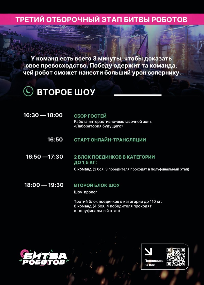 18 октября 2025 года состоится третий отборочный этап Международного чемпионата по битве роботов сезона. Цель Чемпионата – популяризация инженерной мысли как драйвера развития и поддержки современных цифровых технологий.