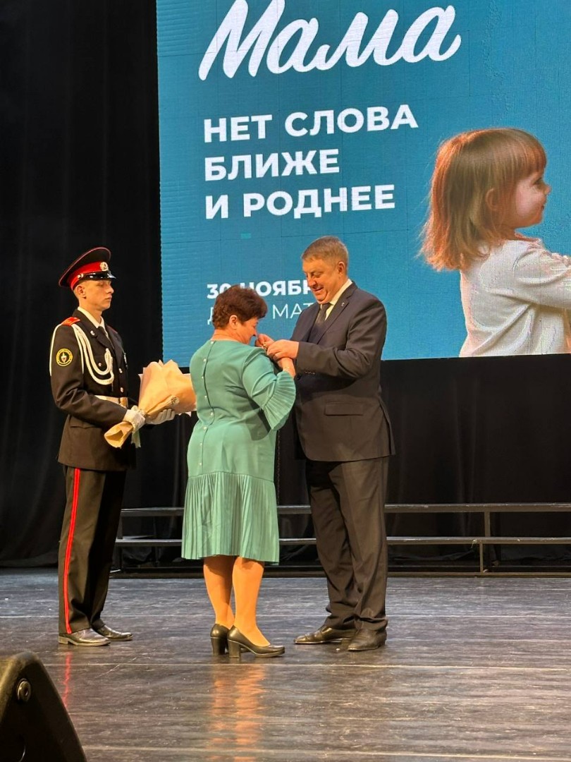 За заслуги в достойном воспитании детей, укреплении семейных ценностей и повышении социальной значимости материнства Губернатор вручил присутствующим на празднике многодетным матерям воспитавшим 5 и более детей Почётный знак Брянской области «Материнская слава».