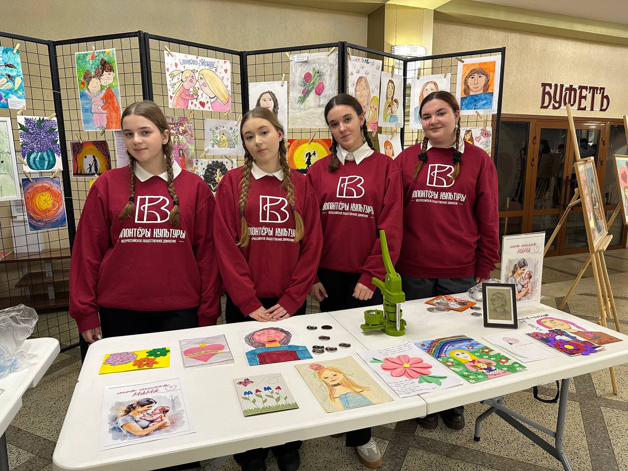 В фойе прибывающих участников торжества встречали тематические площадки. Здесь можно было изготовить значки и открытки к празднику, посетить выставку рисунков, на которых юные брянцы изобразили своих мам, сделать памятное фото.