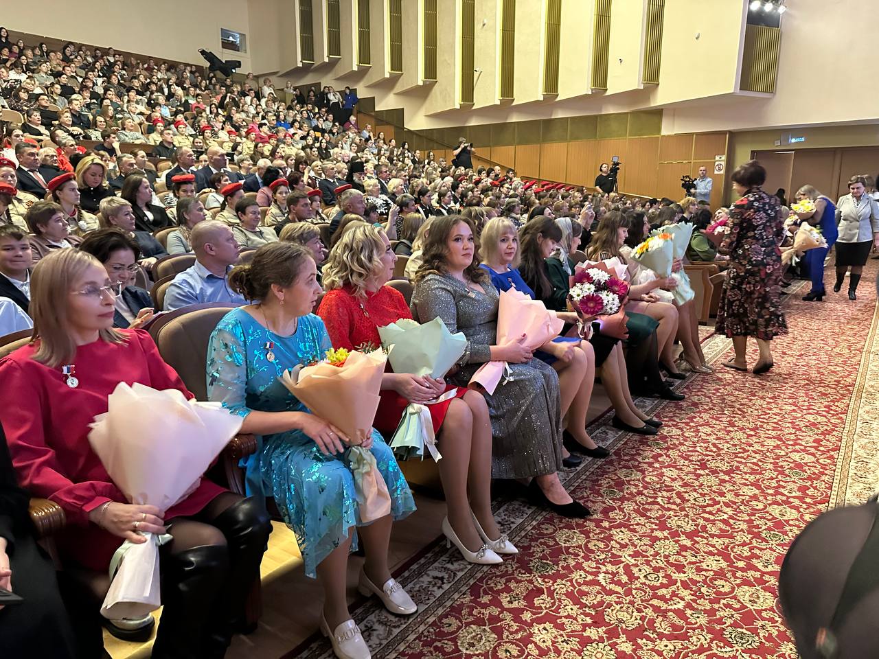 Поздравить тех, кто по праву занимает главное место в жизни каждого человека и выразить в их адрес слова признательности собрались первые лица города и области во главе с Губернатором Александром Васильевичем Богомазом.