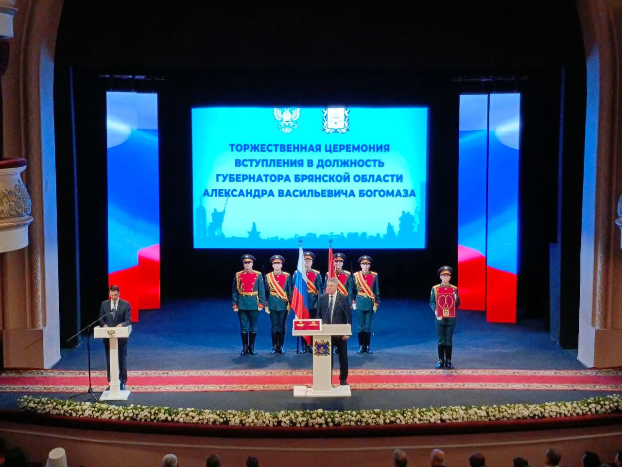 В соответствии с Конституцией Российской Федерации, Уставом Брянской области Губернатор Александр Васильевич Богомаз принес присягу и поклялся честно и добросовестно исполнять возложенные обязанности, служить процветанию области и благополучию ее жителей!