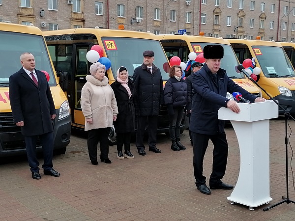 Год педагога и наставника завершается на Брянщине приятным событием. Образовательным учреждениям сегодня были вручены ключи от новых школьных автобусов. В торжественной церемонии приняли участие Губернатор Брянской области Александр Богомаз, председатель Брянской областной Думы Валентин Суббот, главный федеральный инспектор по Брянской области Андрей Дьячук, заместитель Губернатора Валентина Миронова, директор департамента образования и науки Брянской области Алевтина Андреева, руководители города Брянска, муниципальных образований, образовательных учреждений.