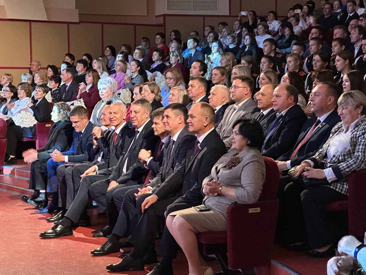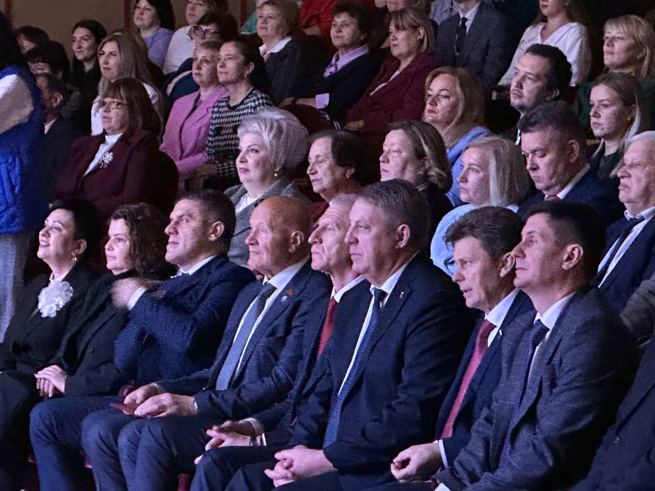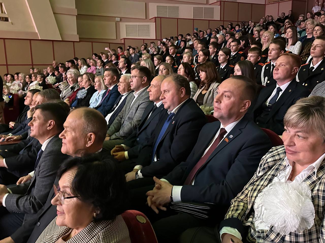 Выразить слова признательности, а вместе с тем поздравить собравшихся пришли первые лица области и города: Губернатор Александр Васильевич Богомаз, заместитель председателя Брянской областной Думы Владимир Михайлович Пронин, федеральный инспектор по Брянской области Игорь Егорович Фильченков, депутаты Государственной Думы РФ, сенаторы, заместители губернатора, руководители исполнительных органов власти, представители муниципальных органов управления образованием, профсоюзных организаций работников образования и науки и другие.