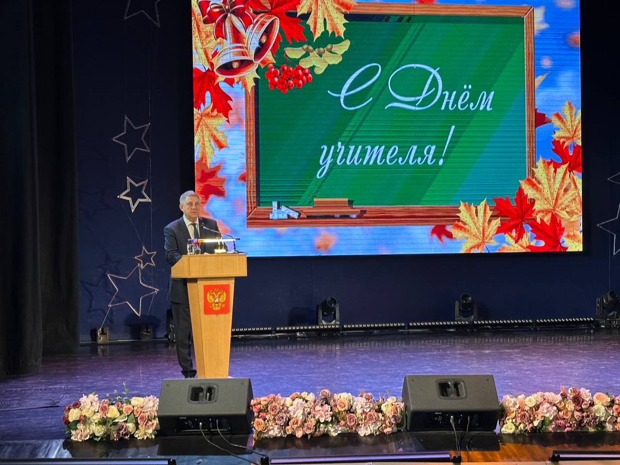 «Этот праздник особенный, ведь каждый из нас когда-то был учеником! - обратился к присутствующим со сцены Глава региона. - У каждого из нас есть любимые учителя, которым мы благодарны за бесценные знания, опыт и поддержку! Учитель - самая важная профессия. Основа успеха нашей страны, нашего народа! На тех знаниях, которые вы даете каждому ребенку, строится будущее России. Без вас невозможны были бы успехи нашей страны в промышленности, сельском хозяйстве, культуре, медицине и многих других отраслях, и самое главное — в защите нашей страны, в обороне…»