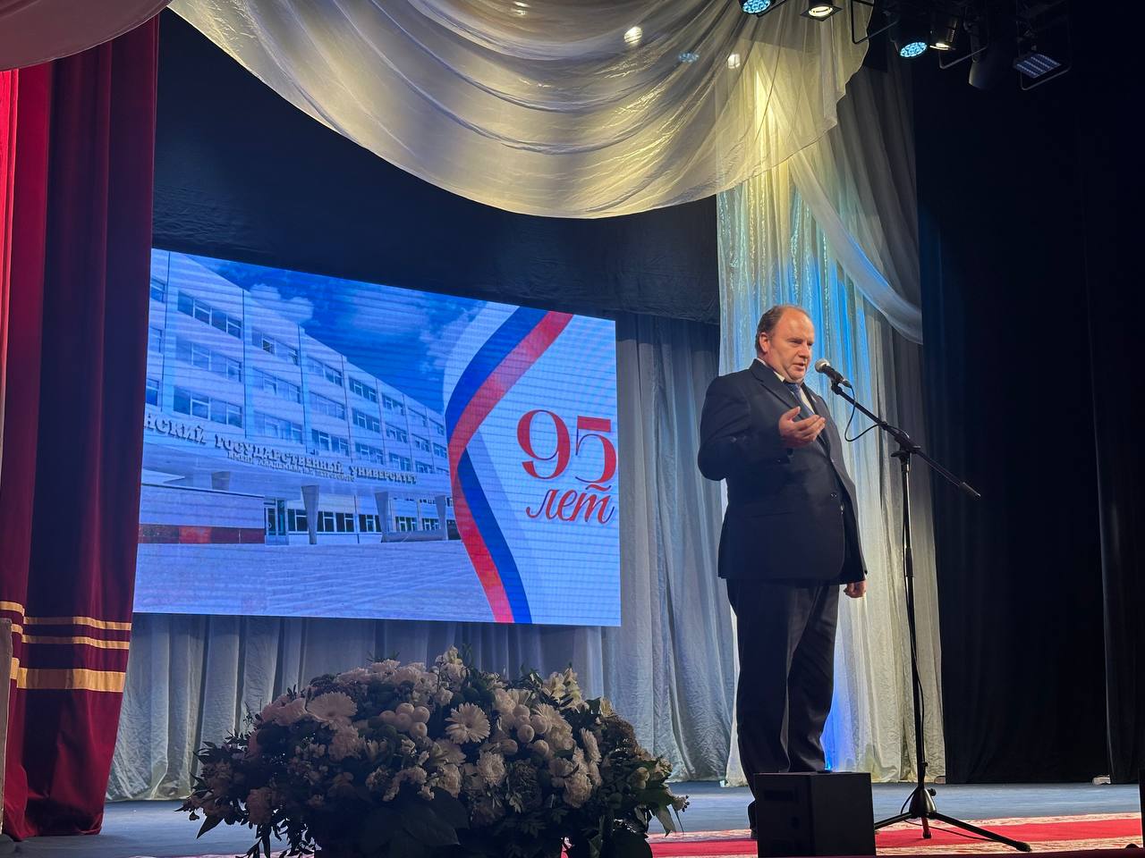От лица ректорского сообщества региона и ЦФО с 95-летием со дня основания коллег поздравил ректор Брянского государственного инженерно-технологического университета Валерий Алексеевич Егорушкин.