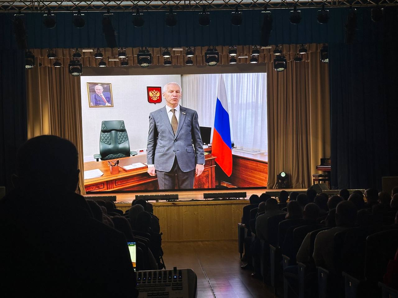 Свои поздравления в адрес учебного заведения, его коллектива и ветеранов по видеосвязи передали председатель комитета Государственной Думы Федерального собрания Российской Федерации по физической культуре и спорту Олег Васильевич Матыцин, с передовой альма-матер поздравили участники специальной военной операции, к педагогам и учащимся обратился выпускник училища - трёхкратный олимпийский чемпион Александр Большунов, родители именитого российского лыжника стали почётными гостями праздничного вечера.