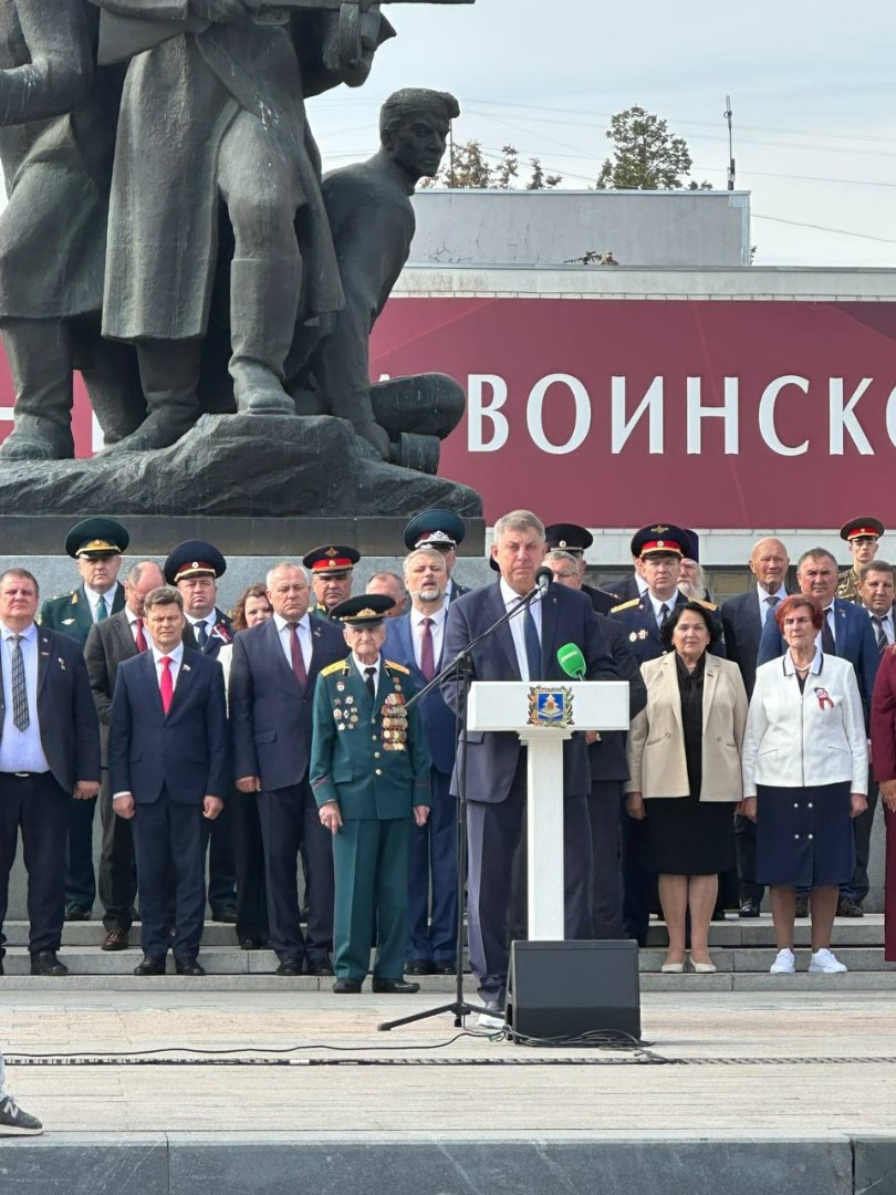 К собравшимся обратился Губернатор Александр Васильевич Богомаз. В своей речи Глава региона, в частности, отметил: «Проходят годы, сменяются поколения, но этот день будет всегда почитаемым и уважаемым нашим народом. Потому что этот день - это символ! Символ мужества и чести, отваги и подвига, доблести и славы…».