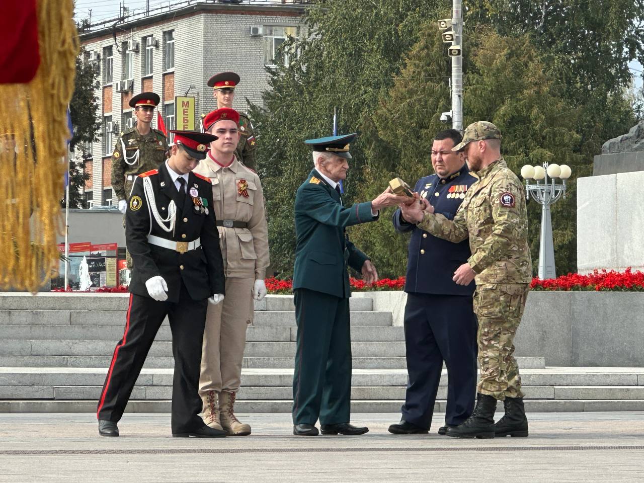 В ходе мероприятия состоялась торжественная церемония передачи земли от ветеранов Великой Отечественной войны участникам специальной военной операции в рамках акции «Сила земли». Земля, привезённая с памятных мест муниципальных образований Брянской области, стала частью заряда гильзы памяти.