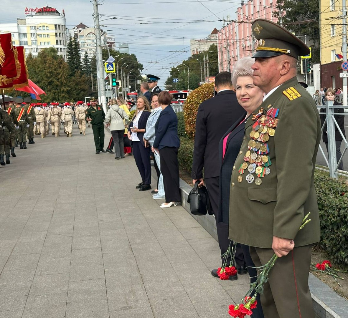 Здесь, в самом сердце города, у монумента воинам и партизанам - освободителям Брянска, собрались первые лица города и области, ветераны Великой Отечественной войны, участники специальной военной операции, представители общественных организаций и духовенства, юнармейцы, кадеты, курсанты военно-учебного центра, воспитанники военно-патриотических клубов, многочисленные жители и гости города.
